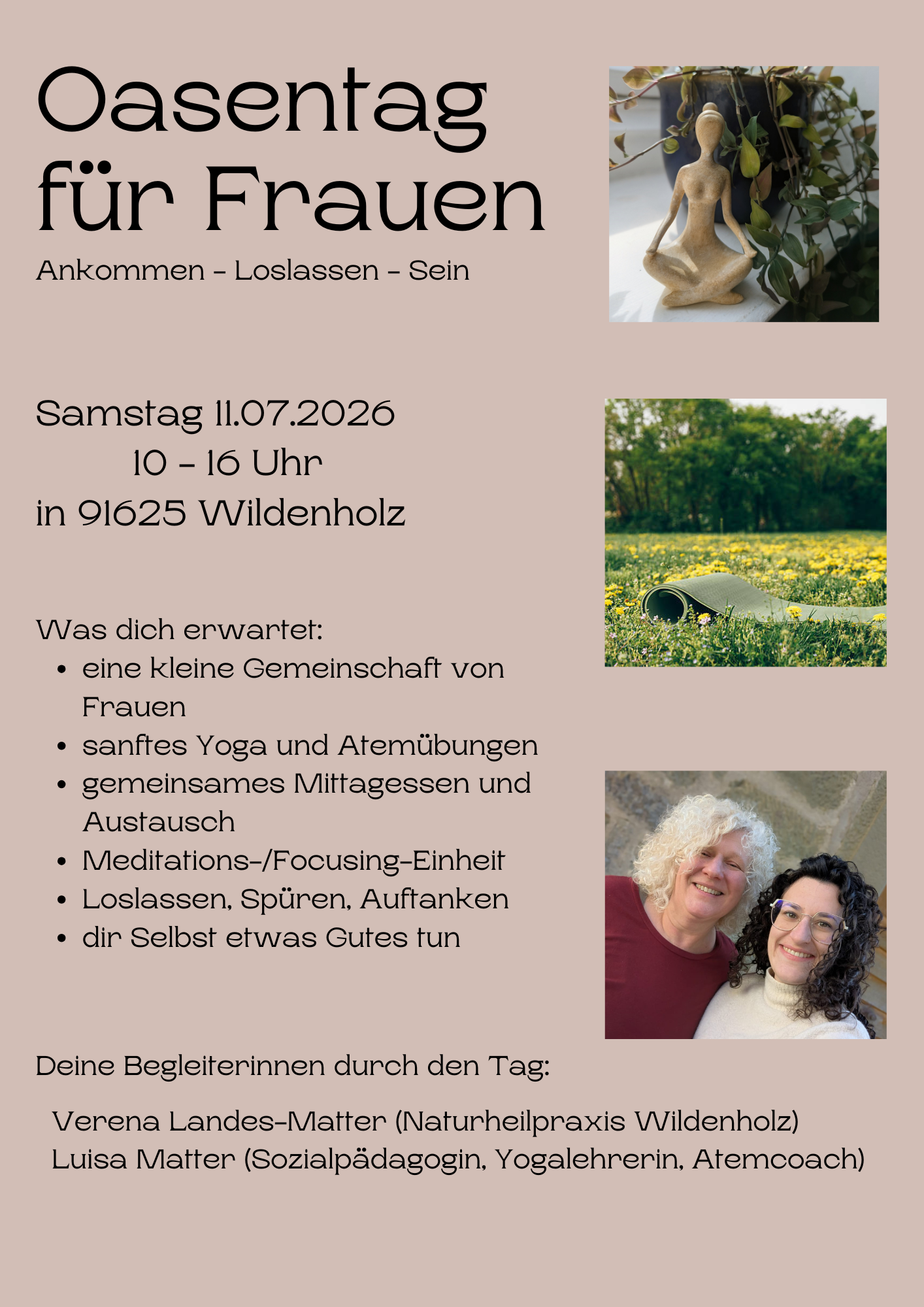 Wir sind Frauen, Mutter und Tochter und teilen eine Leidenschaft: die Liebe zum Menschen und der Entwicklung zum inneren Sein. Beruflich auf unterschiedlichen Ebenen unterwegs bündelt wir mit dem Oasentag unsere Ressourcen und bringen alles zusammen, was uns begeistert.